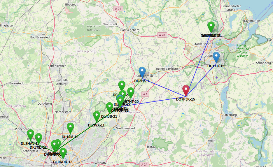 Region: EU8 MeshCom-Gruppen: 26229 (selbst erstellte Gruppe für Lübeck), 26220 (Großraum Hamburg) 26225 (AFuNord), 262, 9 (nur RF-lokal)